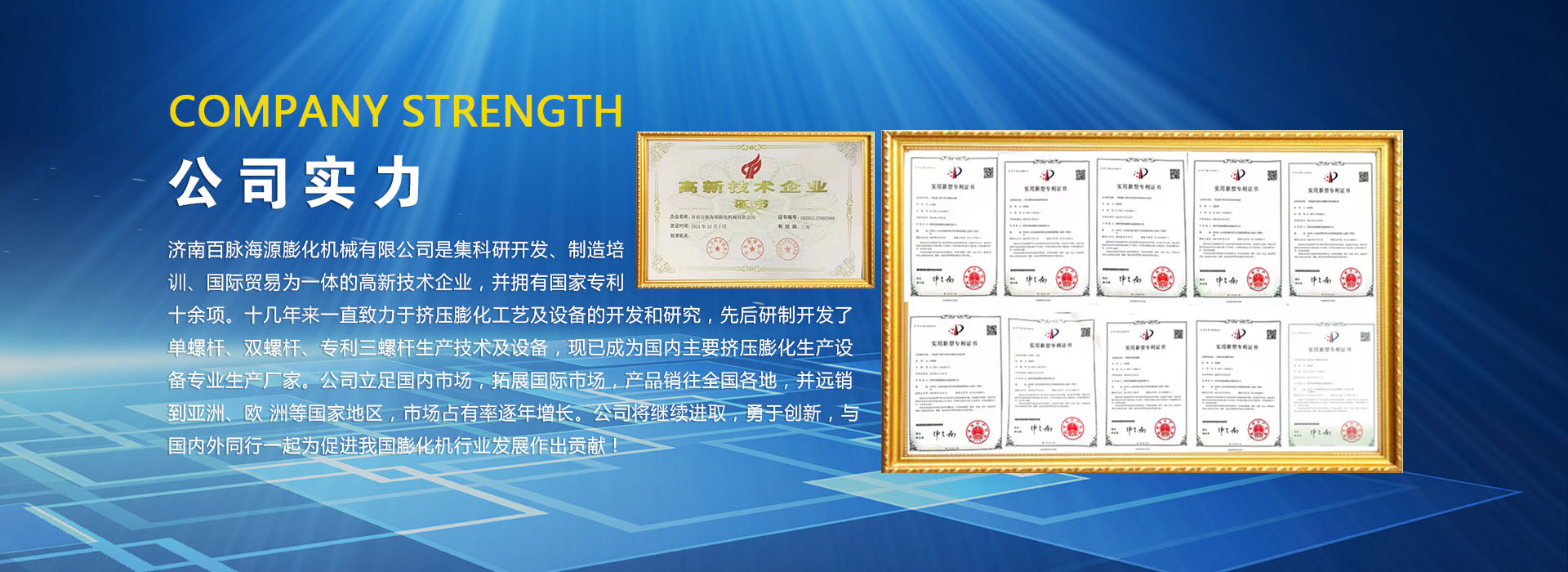 濟南百脈海源膨化機械有限公司是集科研開發(fā)、制造培訓、國際貿(mào)易為一體的高新技術企業(yè),并擁有國家專利十余項。十幾年來一直致力于擠壓膨化工藝及設備的開發(fā)和研究,先后研制開發(fā)了單螺桿、雙螺桿、專利三螺桿生產(chǎn)技術及設備,現(xiàn)已成為國內(nèi)主要擠壓膨化生產(chǎn)設備專業(yè)生產(chǎn)廠家。公司立足國內(nèi)市場,拓展國際市場,產(chǎn)品銷往全國各地,并遠銷到亞洲、歐洲等國家地區(qū),市場占有率逐年增長。公司將繼續(xù)進取,勇于創(chuàng)新,與國內(nèi)外同行一起為促進我國膨化機行業(yè)發(fā)展作出貢獻!